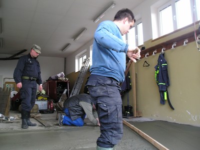 | Protože termín předání nové cisterny už byl na dohled, neváhali jsme a ve středu 5. dubna byla vybetonována nová podlaha garáže. | |