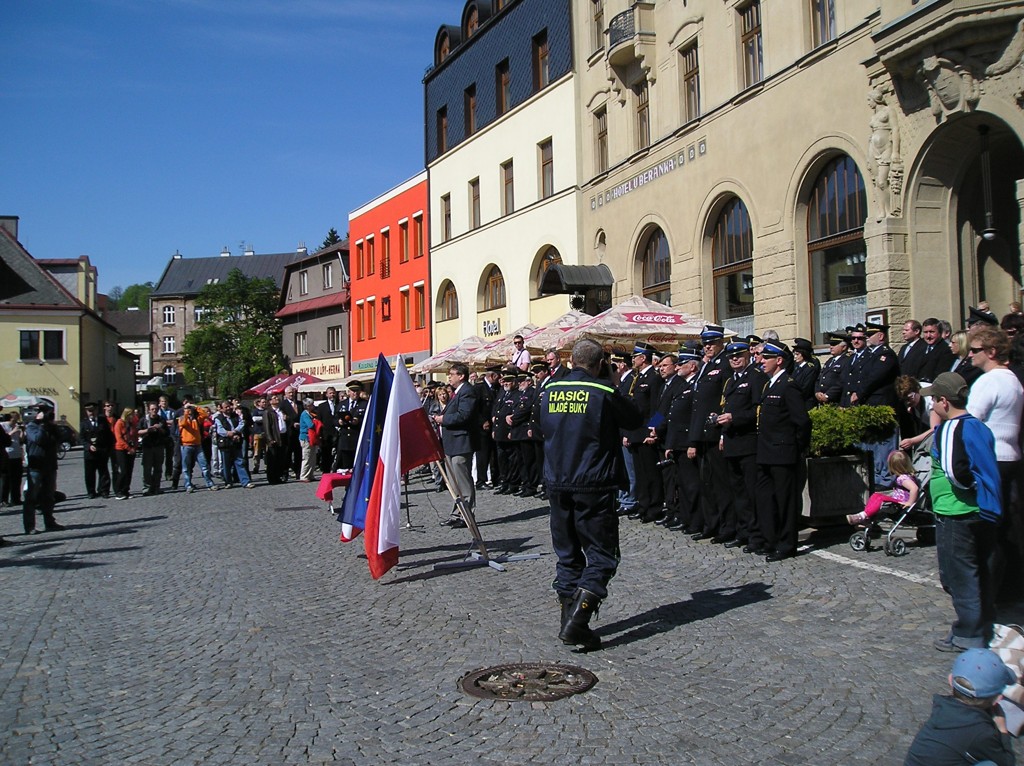 | V sobotu 7. května proběhlo na Náchodském náměstí slavnostní předání 11 nových cisteren sborům dobrovolných hasičů našeho kraje. Na fotografiích můžete vidět mnoho významných osobností, které se akce zúčastnily. Mimo jiných to byl hejtman Bc. Lubomír Franc, starosta Sdružení hasičů Čech, Moravy a Slezska Ing. Karel Richter, zástupci firem THT Polička a Tatra, Hasičské vzájemné pojišťovny, Hasičského záchranného sboru České republiky i Polských kolegů.