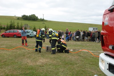 | První prázdninový víkend připravili hasiči tradiční pouťové opékání selete. Hlavním bodem programu bylo představení a svěcení nové cisternové stříkačky ve výbavě jednotky. Slavnostní zahájení provedl starosta městyse, následovaný starostou sboru a zástupcem OSH Náchod. Program zakončila ukázka zásahové činnosti a podrobná prohlídka samotné cisterny. I přes nepříznivé počasí pokračovala zábava do nočních hodin. | |