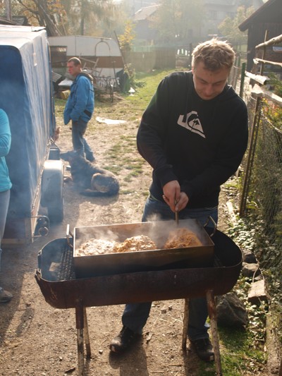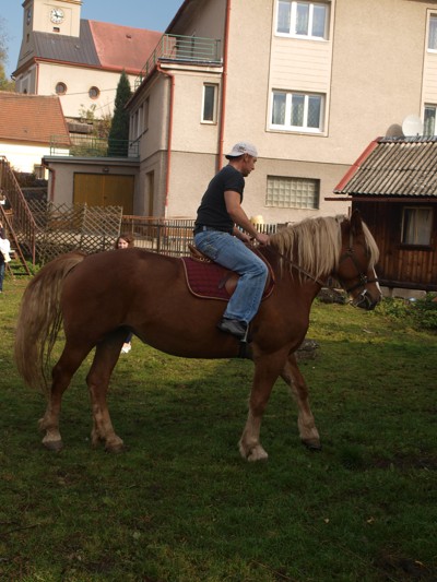 Sobotní odpoledne strávené na paintballovém hřišti rychle přešlo v příjemné večerní posezení v místní hospůdce. Klidné nedělní dopoledne zpestřila návštěva u pohostinných domorodců. Ti nám kromě dobré stravy připravili také možnost svezení na koni, který velice ochotně pózoval našim fotografům. Komu cestou domů zbývala energie vyběhl si zhruba 130 schodů na rozhlednu na Suchém vrchu. | |
