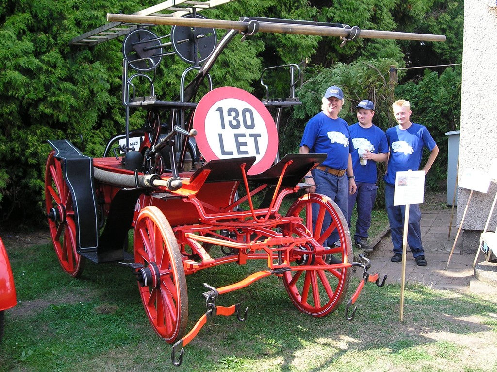 | Poslední srpnová sobota patřila hasičům z Bělovse, kteří slavili 130 let od svého založení. Naše Tatra se účastnila ukázky techniky a my pak pokusu o překonání rekordu v dálkové dopravě vody pomocí věder, za který jsme obdrželi pamětní list. K vidění pak byla také činnost mladých hasičů nebo koněspřežné historické stříkačky. | |