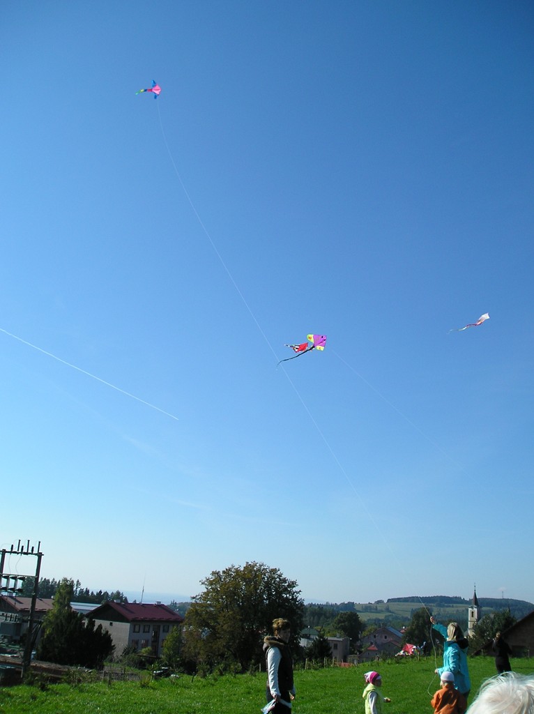 | Premiérově jsme se letos rozhodli uspořádat posvícenské posezení u domácích koláčů s pouštěním draků. Koláče, buchty a zákusky, které byli návštěvníkům volně k dispozici, upekly naše ženy. Draků dorazilo opravdu hodně a větrné počasí jim opravdu přálo. Každý z nich dostal sladkou odměnu a proběhla také soutěž o nejvýše letícího draka, jejíž vítězové byli ocenení pohárem. | |