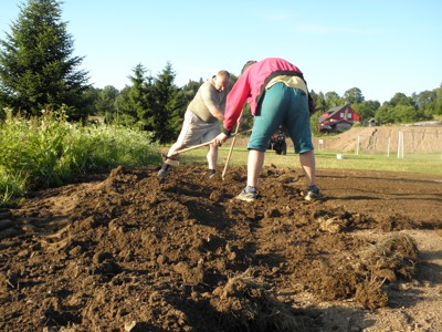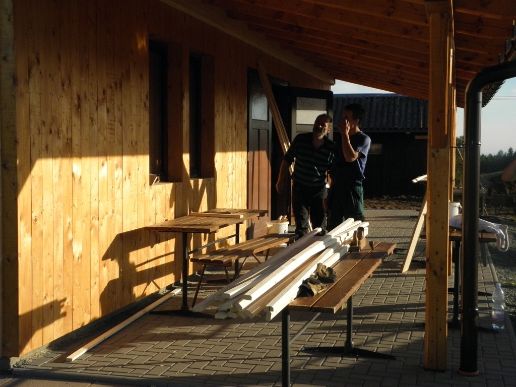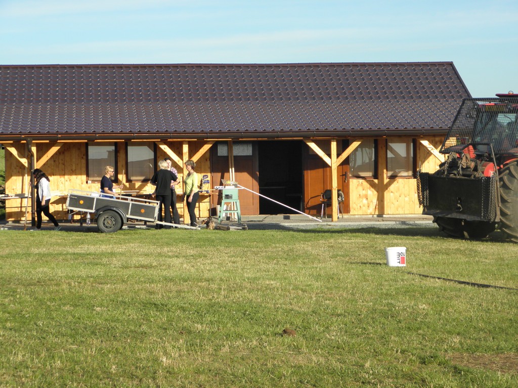 | V týdnu před plánovaným pouťovým opékáním bylo třeba hřiště poklidit a dokončit práce kolem nové základny tak, aby nový trávník stihl do zaříjové soutěže dostatečně zesílit. | |