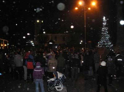 | První adventní neděli večer proběhlo za přítomnosti herců Jana Přeučila a Evy Hruškové slavnostní rozsvícení vánočního stromku na náměstí. | |