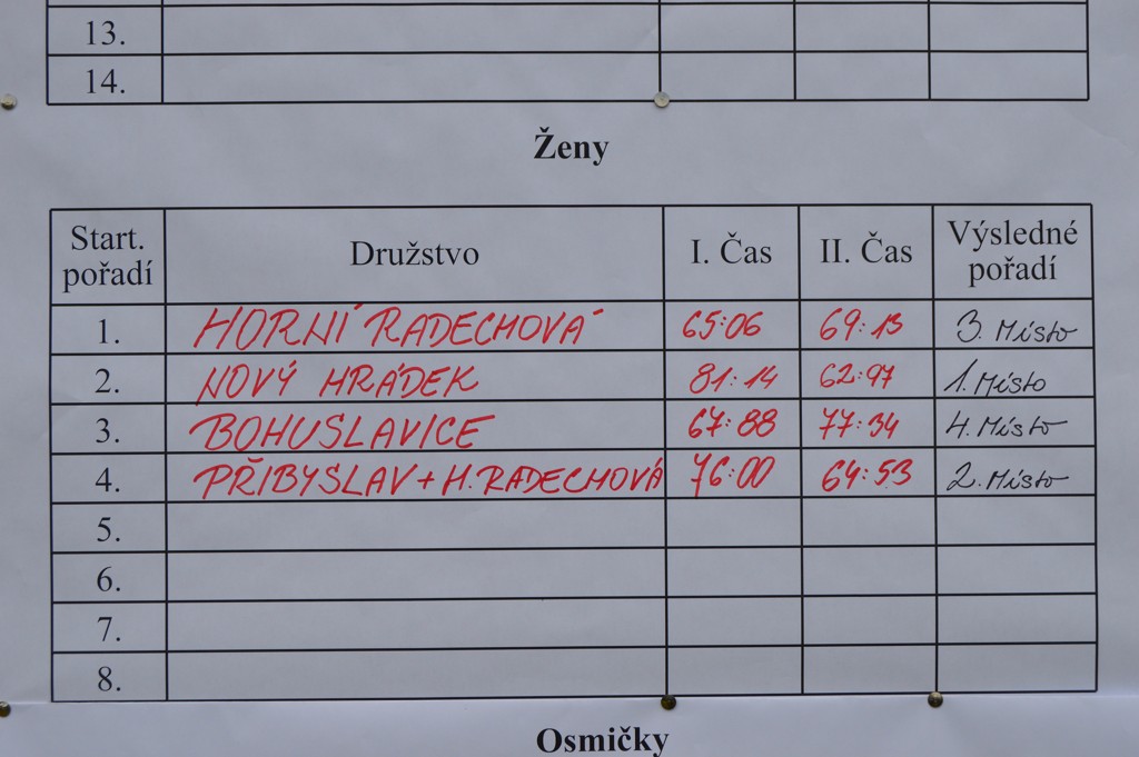 | Letošní ročník soutěže v netradičním požárním útoku byl ve znamení polovičního úspěchu. Ženám se po pár modřinách z prvního pokusu podařil ten druhý a s časem 62,97 s zvítězily. Mužům se naopak čas 58,46 s z prvního kola již nepodařlo vylepšit a skončily na místě čtvrtém. | |