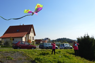 | Padesát létajicích draků se usadilo na slunečné a větrné obloze nad naším cvičištěm při letošní drakiádě. Jako vždy se rozdávaly poháry a sladké maličkosti. Nejvytrvalejší z draků si trochu popolétl a zůstal na obloze ještě dalších pár dní. | |