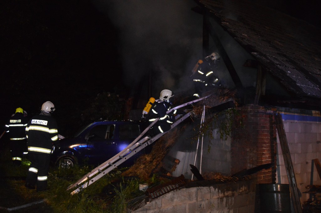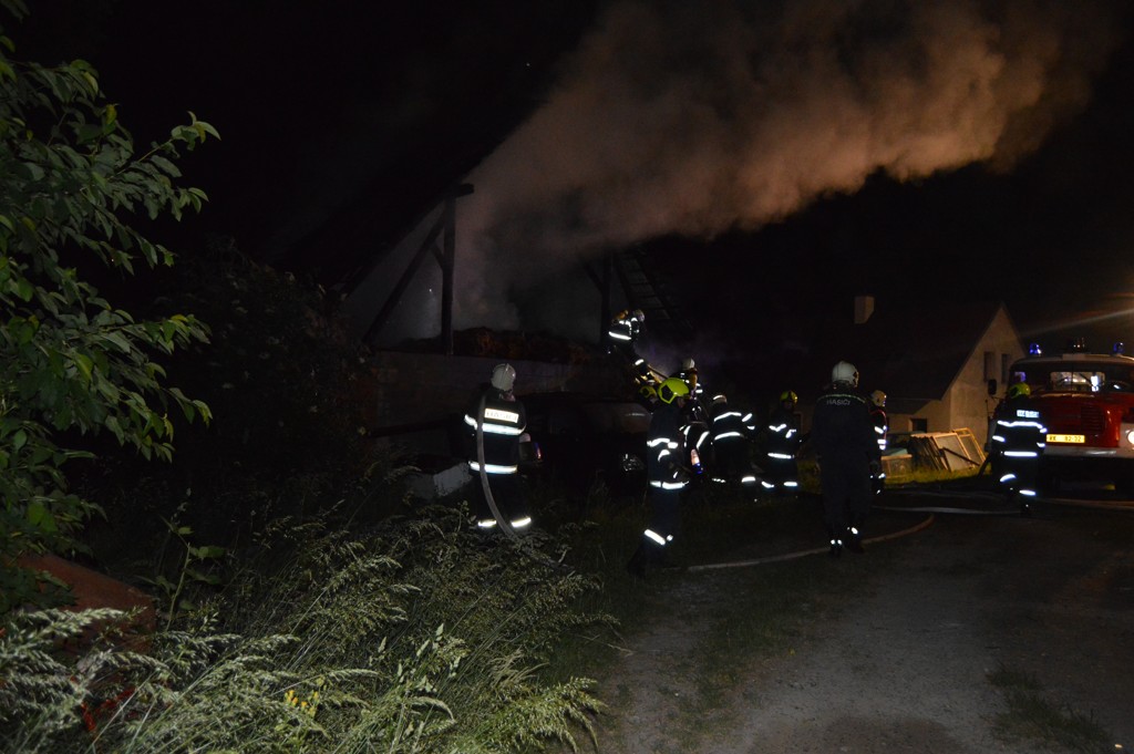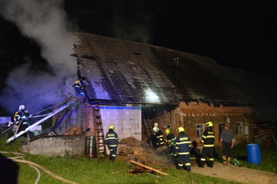 | V noci ze soboty na neděli došlo k požáru stodoly v Bohdašíně. Po zkrocení plamenů musel být všechen zasažený materiál vyházen z půdních prostor ven. Hořelo převážně uskladněné seno, střešní konstrukce nebyla požárem poničena. Celý zásah probíhal v dýchací technice. Profesionální hasiče z Dobrušky na místě doplnili dobrovolní z Bohdašína, Nového Hrádku, Nového Města nad Metují a Olešnice v Orlických horách. | |
