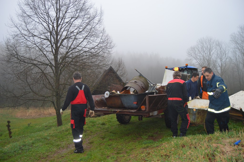 | Ačkoliv jsme se na svoz kovového šrotu pečlivě připravili, ze Rzů a Dlouhého ho přivezli den předem, měli jsme s ním plné ruce práce. Uprostřed odpoledne se totiž rozezněla siréna a část brigádníků musela odjet k požáru dřevníku v Olešnici. Přistavený kontejner jsme ale zdárně naplnili. | |