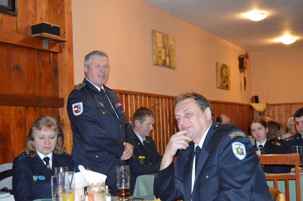 | V tradičním termínu po vánočních svátkách proběhla valná hromada našeho sboru. Jako poděkování za celoroční snahu a reprezentaci byli jmenovitě pozvání i mladí hasiči, jejichž poháry a ocenění zdobili jednací prostory. Z hostů tentokrát dorazili plk. Ing. David Pouč za Hasičský záchranný sbor, Ivan Kraus a Milan Kligl za Okresní sdružení hasičů, Josef Suchánek za okrsek Mezilesí a Josef a Vít Kloučkovi ze Sboru dobrovolných hasičů v Olešnici v Orlických horách. Po vyslechnutí zpráv jednotlivých členů výboru, konstruktivní diskuzi a proslovech hostů následovala večeře a posezení spojené s promítáním fotek, které připomínali uplynulý rok společně odvedené práce i zábavy. | |