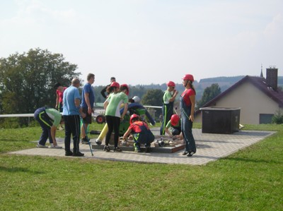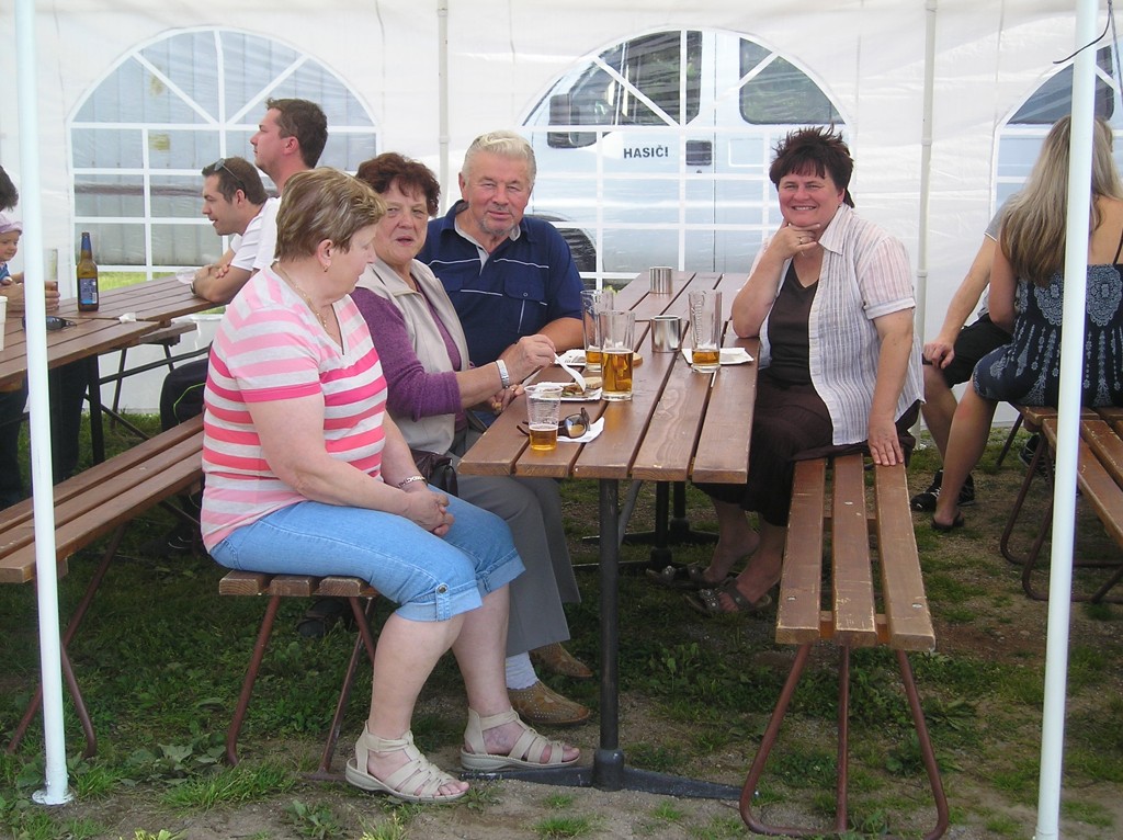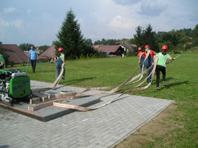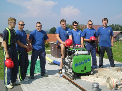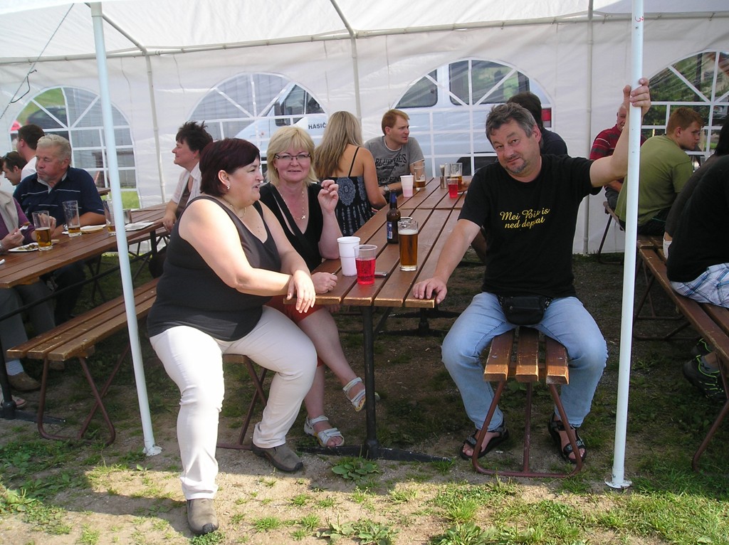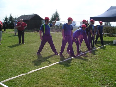 | Patnáct družstev mužů a dvanáct družstev žen dorazilo během slunečného odpoledne na naši soutěž. I letos jsme pro ně připravili novinku, tentokrát v podobě nové dlážděné základny a nástřikové čáry v maximální možné vzdálenosti 90 metrů od stroje. Po úvodním nástupu zahájilo soutěž tradičně naše družstvo. I přesto, že se nervozita z domácího prostředí projevila zaváháním na koši a na béčkách, dosáhli jsme času 27,32 s. Ten dokázalo překonat pouze družstvo Nahořan výkonem 26,40 s. Nejlepší nástřik v čase 25,21 s předvedl proudař z Bukovice, která uzavřela první trojici. Ženskou kategorii zahájilo družstvo NOVA solidním pokusem v čase 30,50 s, díky kterému skončilo celkově páté. Druhé domácí družstvo soutěž uzavíralo. Podařený útok znamenal opět vylepšení letošního maxima na druhou příčkou s časem 27,47 s. Zvítězily ženy z Kramolny, třetí místo obsadila Vršovka. Slavnostní vyhlášení výsledků narušil nejprve mírný, později hodně nepříjemný déšť, který jej proměnil doslova v úprk nastoupených družstev. Následoval přechod silné bouřky s kroupami, která letošní ročník soutěže ukončila. | |||||||||||||||||||||||||||||||||||||||||||||||||||||||||||||||||