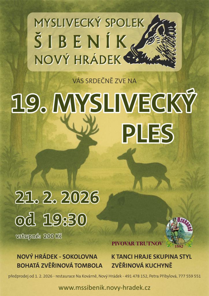 V Novém Hrádku se uskutečnil již 19. ročník tradičního mysliveckého plesu.