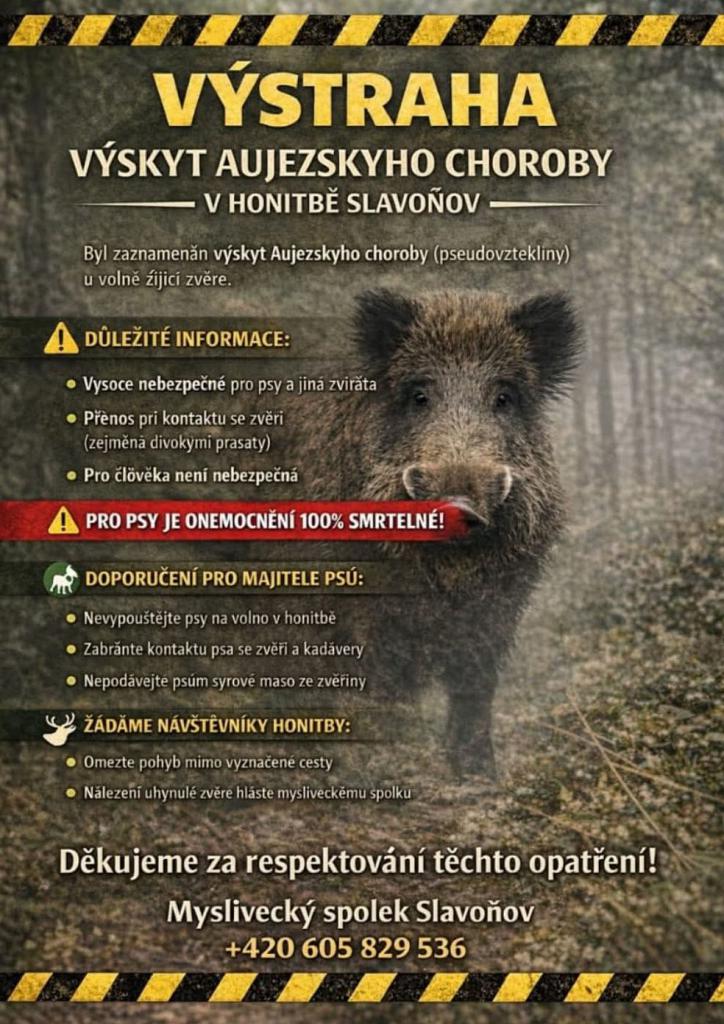 UPOZORNĚNÍ NA VÝSKYT AUJEZSKYHO CHOROBY V HONITBĚ SLAVOŇOV !