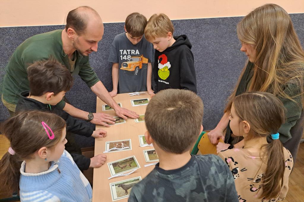 Na lednové schůzce mysliveckého kroužku Ostříži se děti pod vedením Michaela Hály sešly v učebně. Věnovaly se vyplňování testu ze znalostí myslivosti, procvičily si určování plemen psů vhodných pro mysliveckou práci a na závěr si zpestřily program společnou hrou.