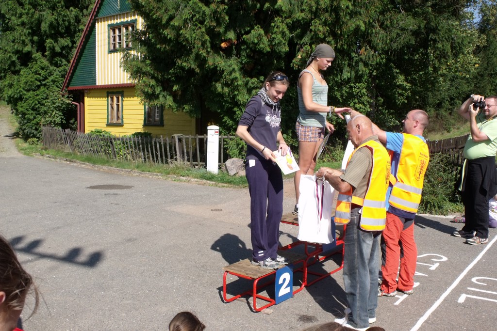 | 17. září 2011 pořádal Sokol Nový Hrádek už 7. ročník Župního přeboru v přespolním běhu. Krásné počasí a chuť změřit svoje síly s ostatními přilákalo na start celkem 93 účastníků. Nejpočetnější zastoupení měl Sokol Dvůr Králové nad Labem, který zároveň získal nejvíce medailí. Na druhém místě jak v počtu závodníků, tak v počtu umístěných na stupních vítězů, byl Nový Hrádek. Župního přeboru se dále zúčastnily jednoty z Jaroměře, Úpice a České Skalice. V průběhu celého dopoledne panovala soutěživá atmosféra a dobrá nálada. Přebor Podkrkonošské župy Jiráskovy v přespolním běhu proběhl v atraktivním prostředí okolí hradu Frymburk 17. září 2011 v Novém Hrádku. Pořádal ho odbor všestrannosti s oddílem lyžování místního Sokola. Byl to již 7. ročník, začíná se rodit tradice. Zatím vždy a letos obzvlášť bylo krásné počasí a všeobecná pohoda znásobená bezproblémovým výkonem pořadatelů, kterých bylo asi 17. Startovalo 93 závodníků z 6 jednot, místních běželo 28, viz přiložené výsledky. Ceny, diplomy a medaile předali vítězům ředitel závodu, starosta jednoty a náčelnice. Závodníci z mladších kategorií byli odměněni všichni. Ceny věnovali: župa, Sokol Nový Hrádek, Marešovi a Chaloupkovi. Za bezproblémový průběh závodu a všeobecnou pohodu nutno poděkovat všem pořadatelům, sponzorům a zvláště manželům Martínkovým a Bohadlovým, kteří připravili trať. Nutno poděkovat i manželům Jelenovým za zajištění občerstvení, Pertu Bohadlovi a majiteli auta za odvoz materiálu ze sokolovny a rovněž i obyvatelům Hradní ulice u křížku za pochopení a úklid aut z parkoviště. Rovněž nutno poděkovat majitelům hradu manželům Kahounovým, za propůjčení cesty a zajištění možnosti prohlídky hradu účastníkům závodu. Fotografie pořídil a vývěsku na náměstí zhotovil pan Chrenko. J. Holý st., ředitel závodu Prohlédněte si výsledky. |